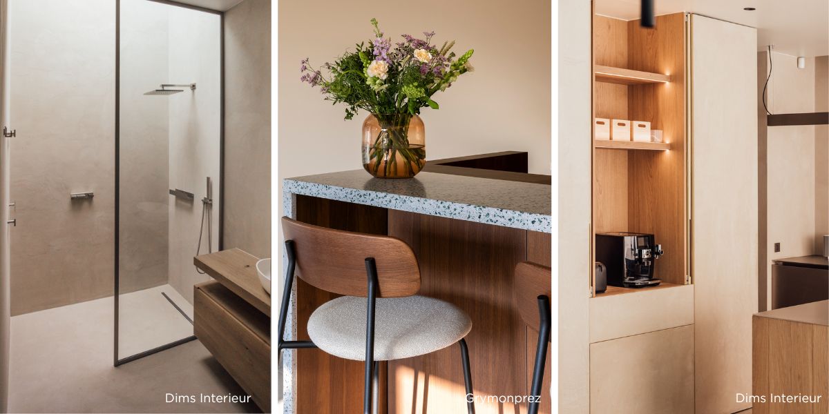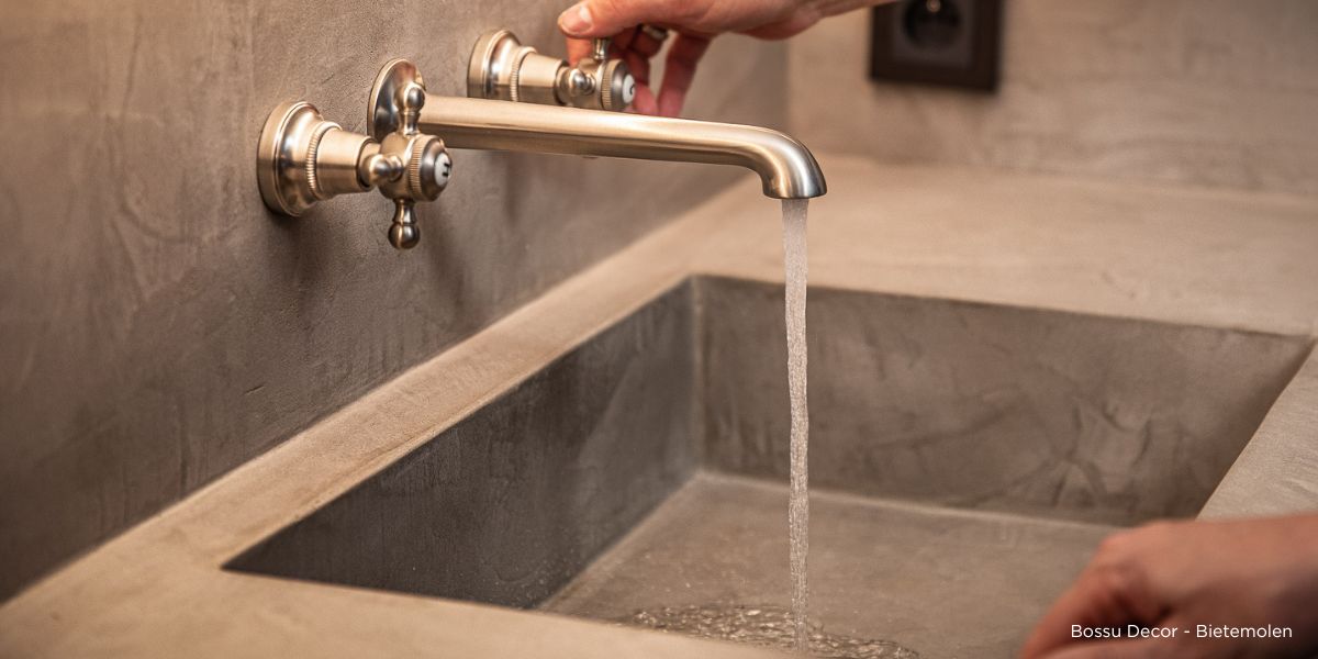 Een gladde afwerking beperkt het binnendringen van water, vet en vuil. We raden altijd een gladde afwerking aan voor technische zones zoals vloeren en douches. Bij een glad oppervlak volstaat regelmatig schoonmaken meestal.